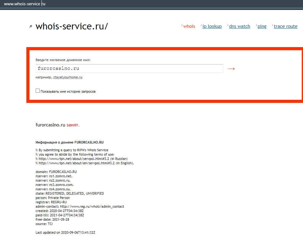 whois-service ru - специализированный интернет-сервис по проверке ip-адресов сайтов