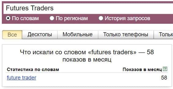 То же название "Futures Traders", но написанное с пробелом, люди пытались найти в системе Яндекс 58 раз.