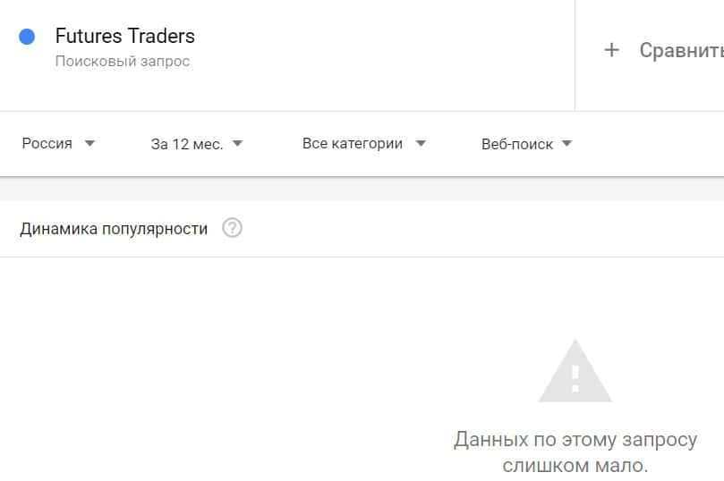 Если вбить то же название на английском языке, но с пробелом - "Futures Traders", результат поиска будет таким: очень мало данных.