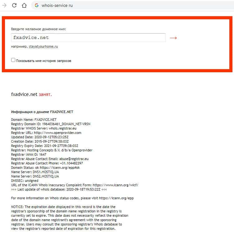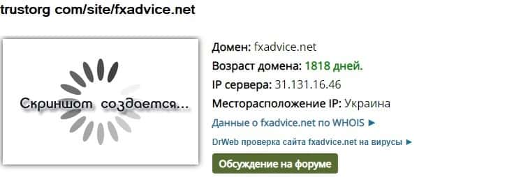 Жулики скрывают настоящего владельца домена их сайта fxadvice net. Не хотят они по этому поводу сильно светиться, поэтому решили не показывать.