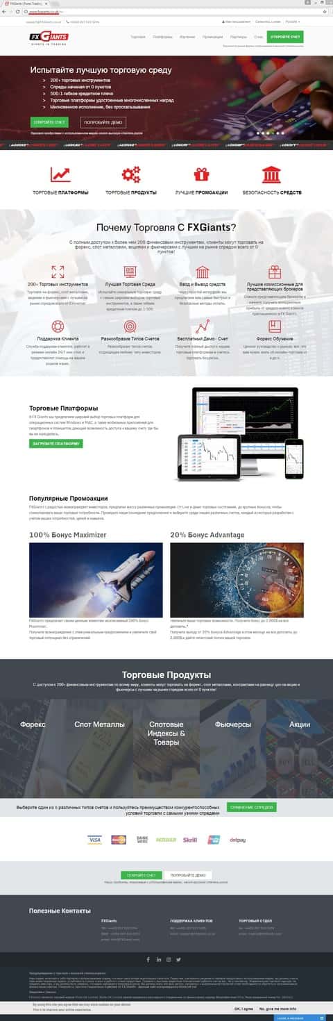 Что стоит официальный сайт ФХ Гиантс?