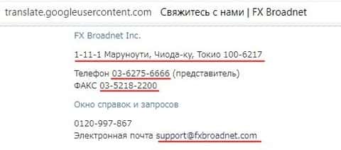 Контакты, представленные не сайте конторы аферистов ФХ Трейдинг Системс