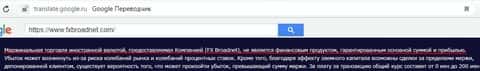 Что же по поводу ответственности. Договора как такового на сайте жуликов ФХ Трейдинг Системс нам найти не удалось, но вот всю ясность даёт нам предупреждение о рисках, данное в самом низу главной страницы. Хоть перевод и не совершенен, но он даёт понять, что никакой ответственность за свою платформу в принципе и за ваши деньги в частности мошенники FX Trading Systems никакой ответственности не несут, а значит могут творить что им вздумается.