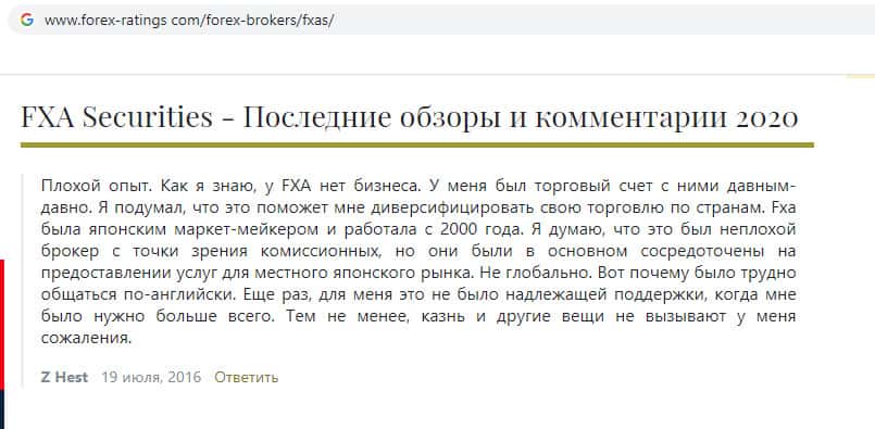 FXA Securities - мошенническая организация, которая выдавала себя за брокера. Жулики работали из Японии, выдавая себя за брокера, а на самом деле просто брали деньги от трейдеров и не возвращали. После того как ограбив достаточное количество людей, жулики решили слить фирму и присвоить все деньги инвесторов себе.
