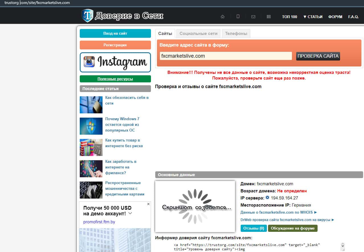 Фейковые отзывы на сайте конторы FXCMarketsLive