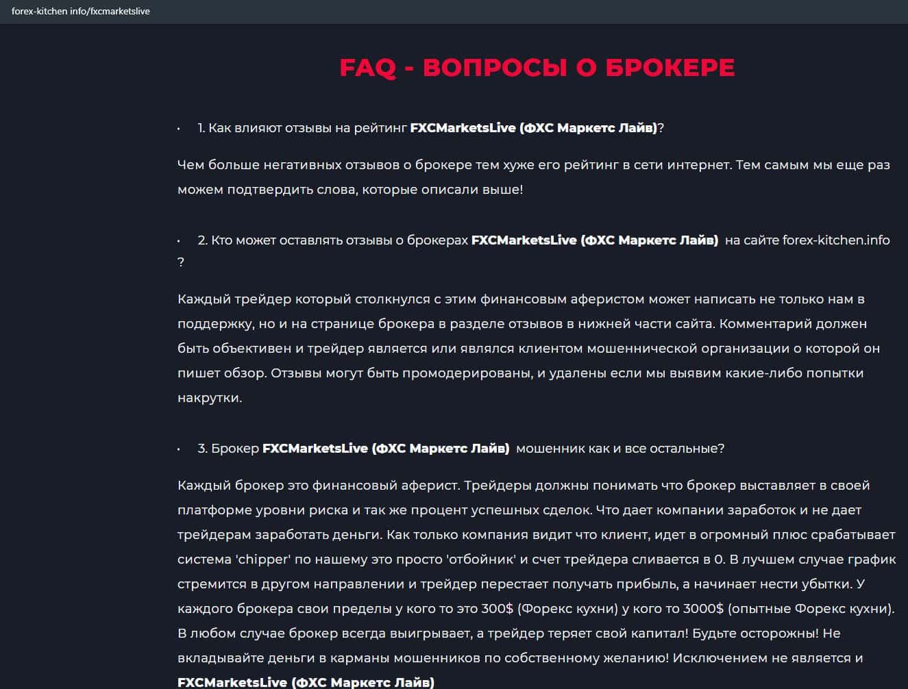 - Статья-обзор мошеннической конторы FXCMarketsLive