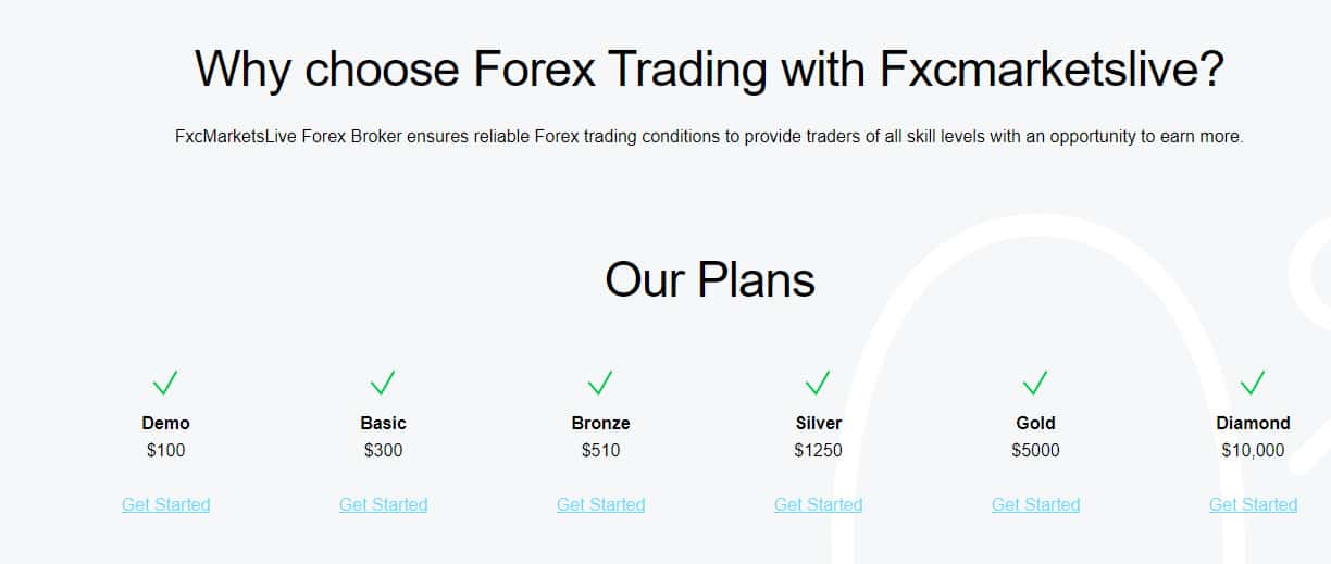 Лохотронская организация FXCMarketsLive для своих клиентов подготовила множество различных счетов и все они разнятся только первоначальной суммой депозита. Да, контора описывает, что там есть определенные моменты с улучшением торговых условий, но все это довольно не существенно.