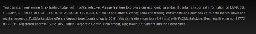 Чтобы полностью снять с себя ответственность и можно было без проблем вывести деньги в оффшор, контора FXCMarketsLive предприняла организовать свою регистрацию на островах Сент-Винсент и Гренадины. Вот собственно и их адрес: Suite 305, Griffith Corporate Centre, Beachmont, Kingstown, St. Vincent and the Grenadines.