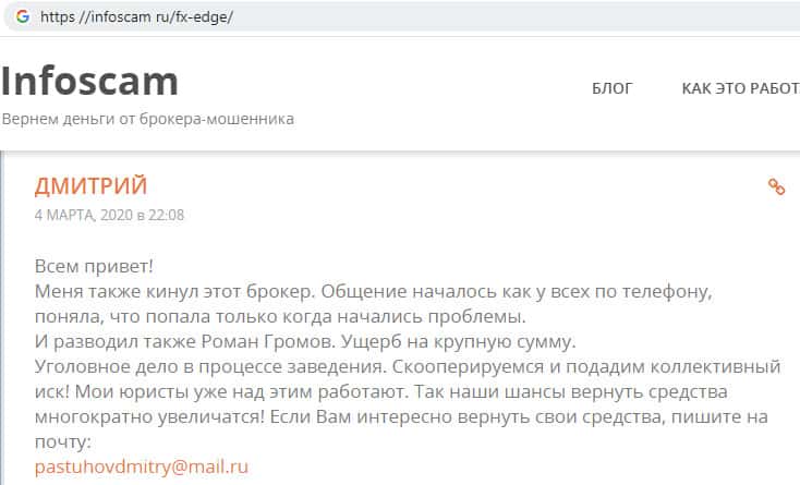- Детальный анализ аферной деятельности воровской брокерской конторы FX-EDGE на портале infoscam ru