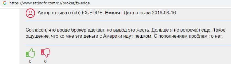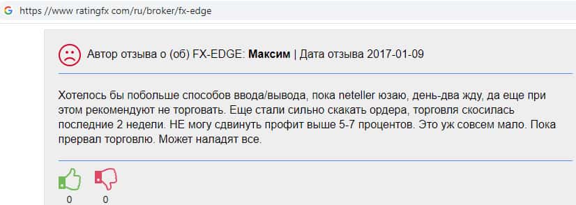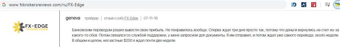 Негативный отзыв постоянного трейдера о работе с жульническим форекс дилером ФХ-ЭДЖ