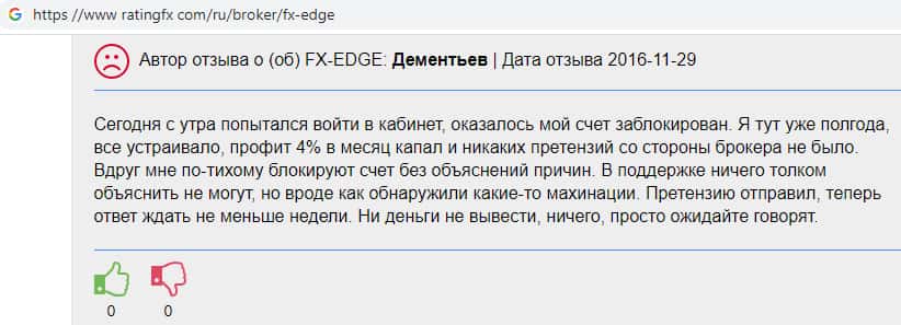- Жульнический форекс дилер FX-EDGE заблокировал счет и не выводит средства несчастному трейдеру
