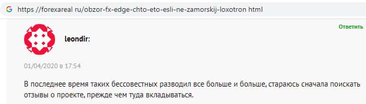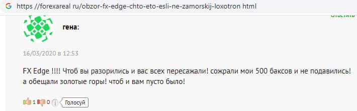 - По мнению еще одного клиента брокер ФХ-ЭДЖ - обыкновенный махинаторский проект