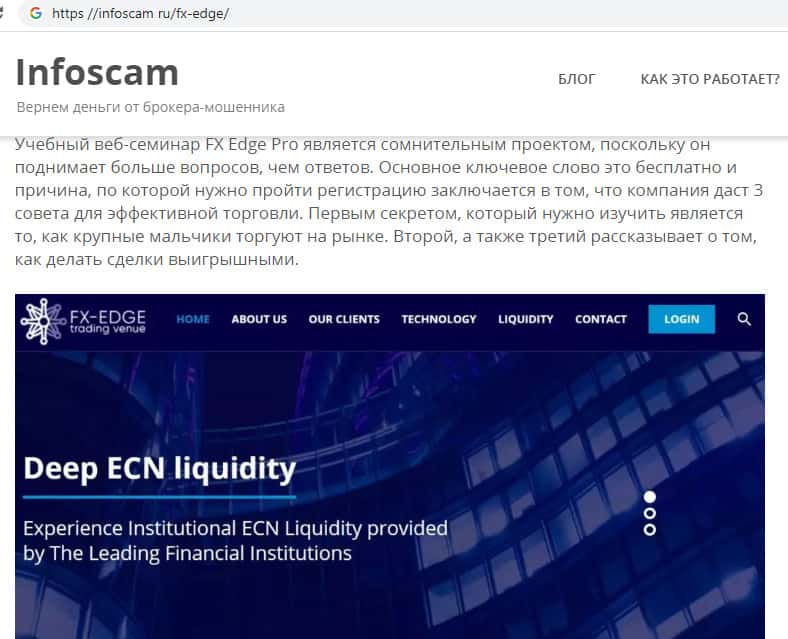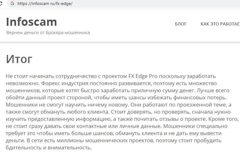 Детальный анализ аферной деятельности воровской брокерской конторы FX-EDGE на портале infoscam ru