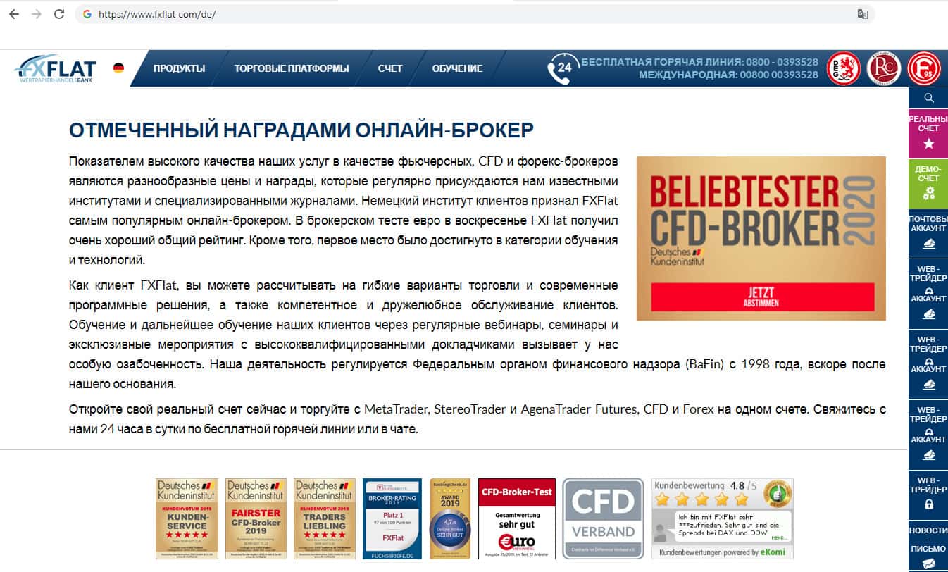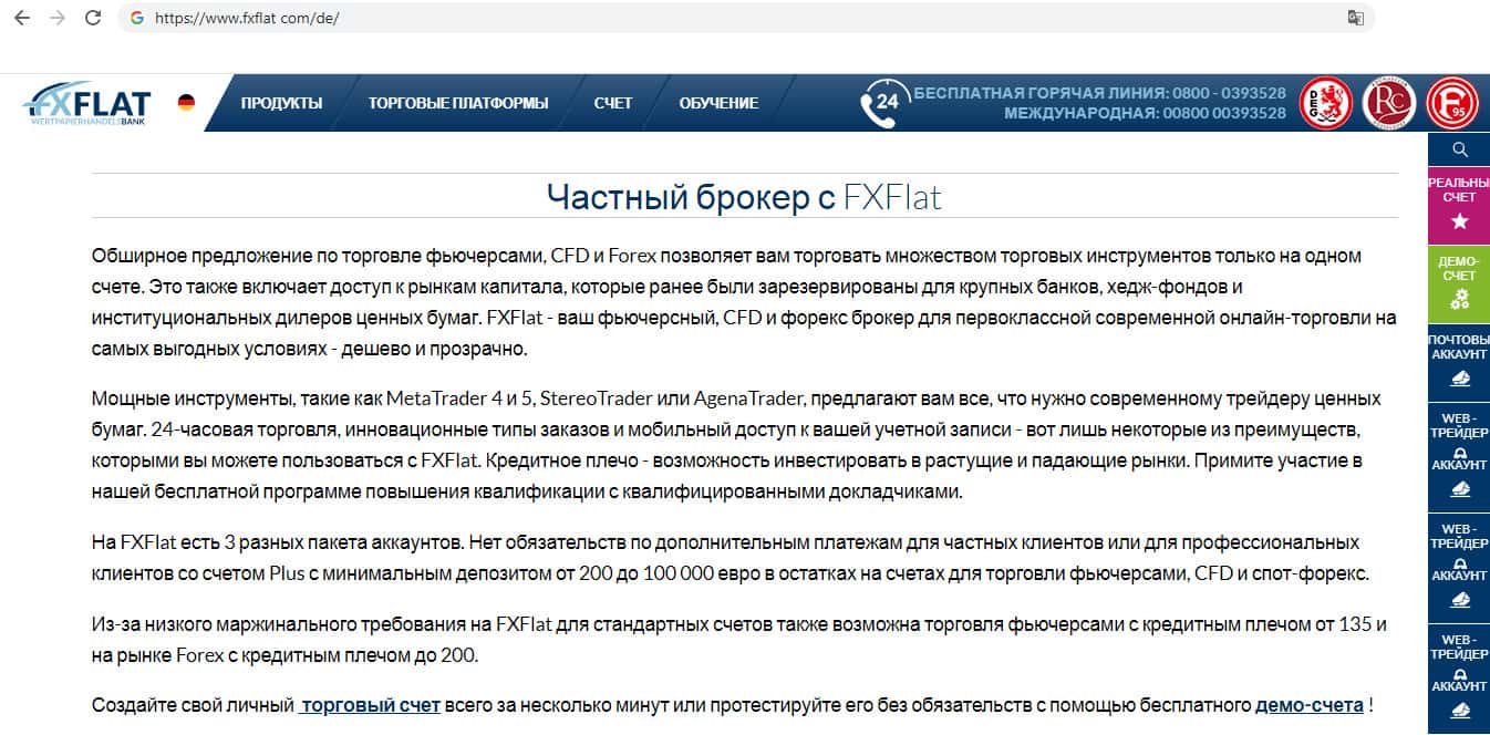 Мошеннический интернет ресурс FxFlat выглядит посредственным коммерческим проектом, созданным для вымогательства денег. Все признаки на лицо - это и яркие картинки, громкие предложения компании, обещания золотых гор и подобная лживая информация. Денег компания не пожалела на сайт, ведь именно там клиент попадает в финансовую ловушку.