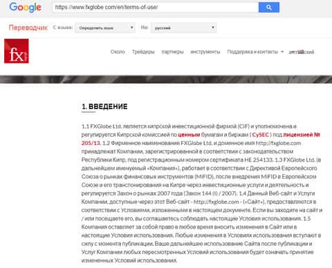 С помощью сайта мошенников Фх Глоб мы можем узнать, что аферисты FxGlobe являются очередным оффшорным брокером, который якобы получил лицензию от офшорного регулятора. Данным регулятором по словам жуликов Фх Глоб является CySEC. На изображении ниже вы можете увидеть информацию о лицензии шулеров FxGlobe с их официального сайта.