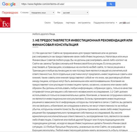 - Отзыв о лохотроне Фх Глоб от англоязычного трейдера с сети интернет