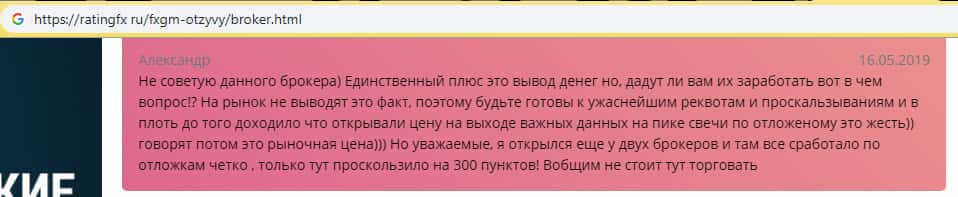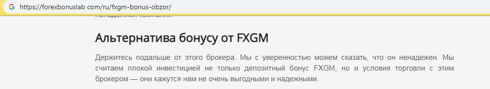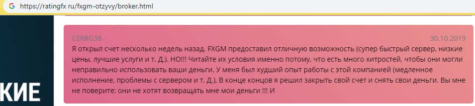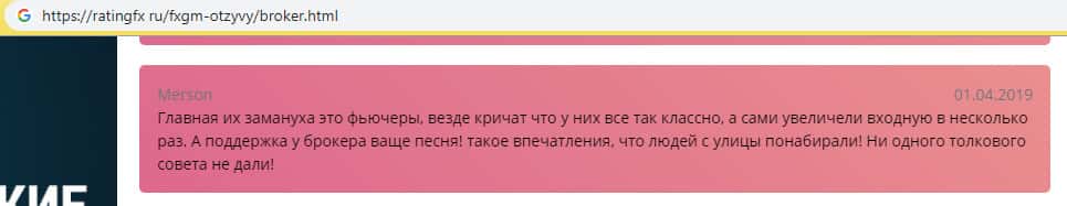 - Негативный отзыв о лохотроне FXGM с одного из интернет-порталов