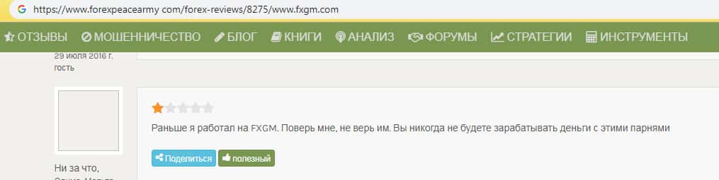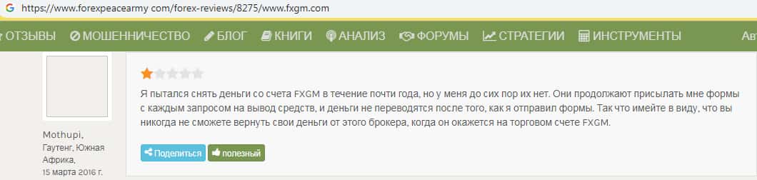 Бывший клиент конторы FXGM полностью поддерживает негативные отзывы