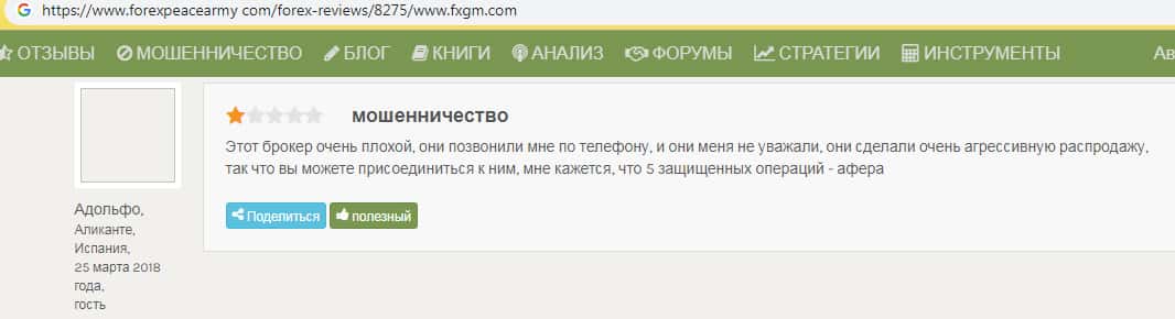 - Негативный комментарий жертвы лохотрона FXGM на одном из интернет-ресурсов