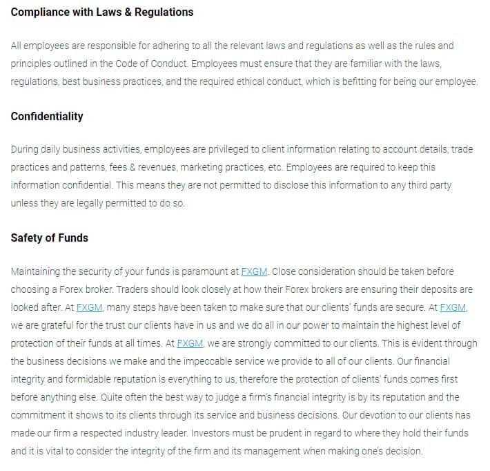 На скриншоте, расположенном ниже, показан переведенный раздел политики, которые содержат в себе воду о жульничестве конторы FXGM и о том, какую информацию им должны предоставлять пользователи для того, чтобы без труда проводить аферы на подвальном сайте FXGM.
