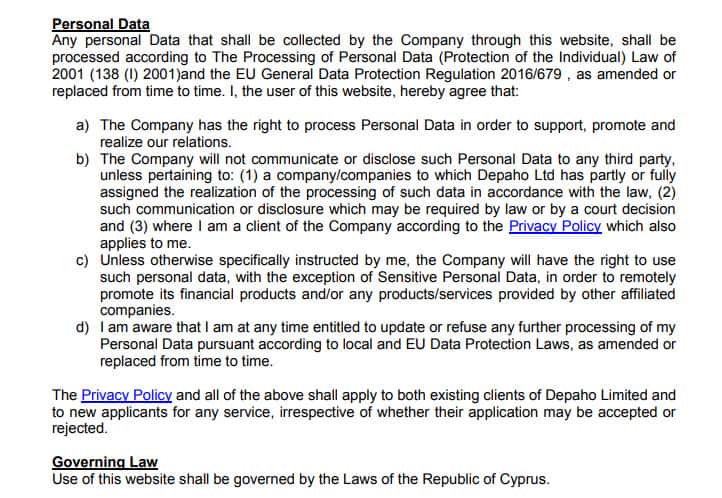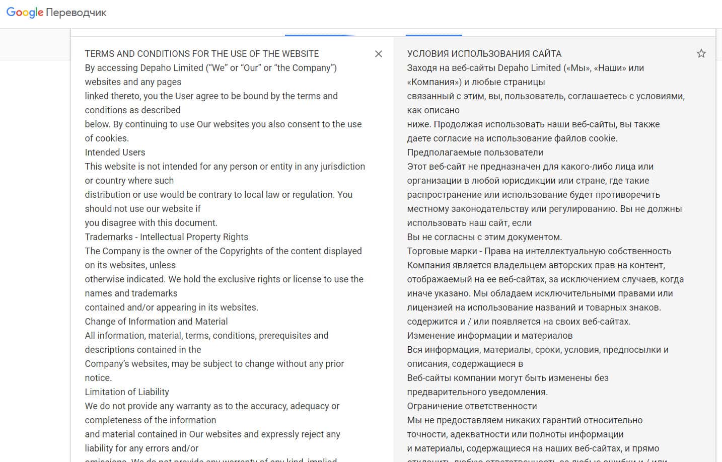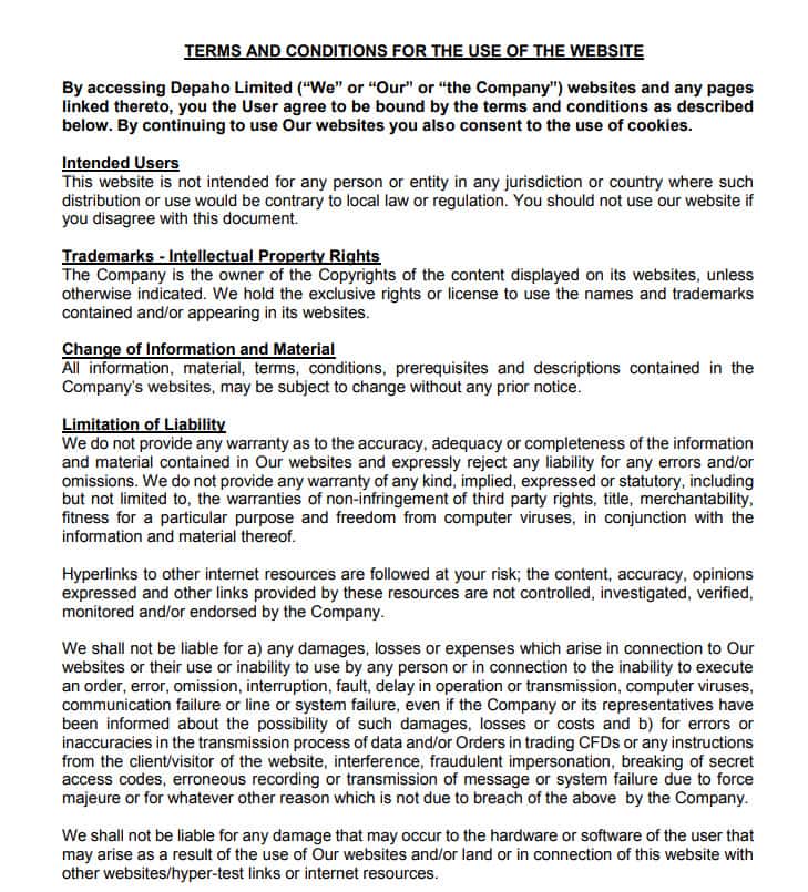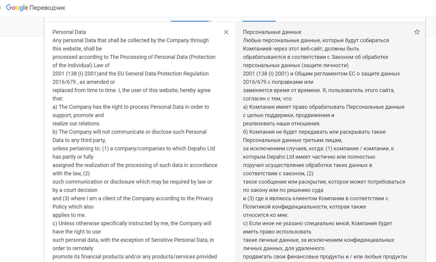 - адрес - Depaho Ltd, Agias Fulaxeos & Amisou 134, Annissa Court, 4th Floor, 3087 Limassol, Cyprus;