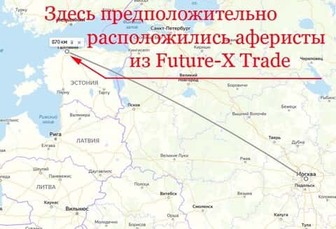 По заявлению мошенников брокерской конторы Фьючер Икс их компания располагается в Таллине, но аферисты как всегда врут, и на самом деле располагаться могут где-угодно.