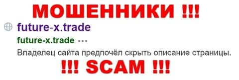 Портал scamadviser при рассмотрении характеристик портала future-x trade указывает на наличие различного рода признаков мошенничества, таких как скрытие данных о владельце и прочее.