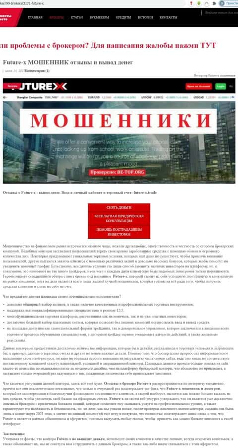 - Обзоры брокерской аферы Фьючер Икс на различных ресурсах в сети Интернет