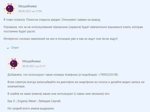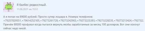 Этот клиент в двух своих сообщениях ставит пользователей Сети в известность, как он заработав, не может вывести свой заработок и сообщает реальные контакты мошенников.