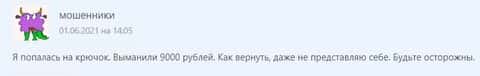 Отзыв клиентки, потерявшей небольшую сумму в девять тысяч рублей, а для кого-то это может быть даже очень значительной суммой.