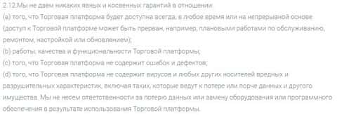 Компания не несет ответственности за наличие вирусов в своей платформе, за причиненный ущерб программной и физической составляющей оборудования клиента торговой платформой.