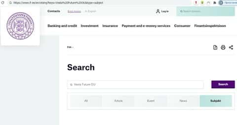 По заявлениям мошенников из Фьючер Икс их управляющая компания зарегистрирована в Эстонии, но как показывают проверки - это ложь, в Эстонии никто не знает о существовании Vesta Future OU.