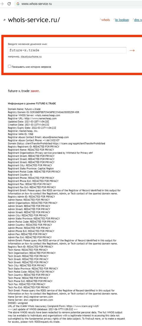 - Секреты владельцев домена future-x trade надежно скрыты