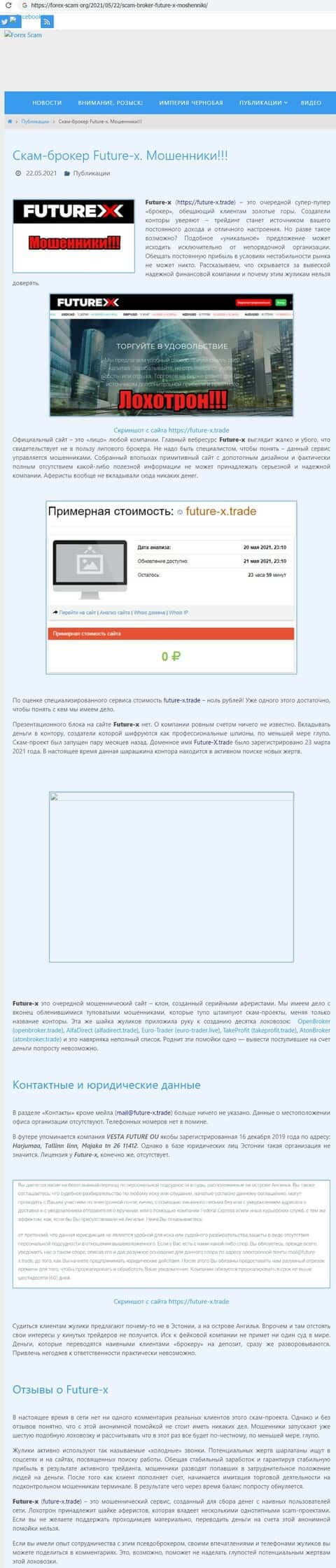 Обзоры брокерской аферы Фьючер Икс на различных ресурсах в сети Интернет