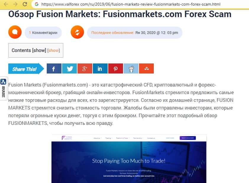 Разоблачительная статья об аферистах Фьюжин Маркетс на странице valforex com