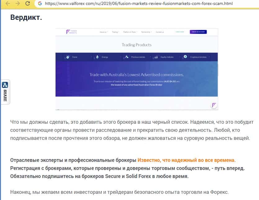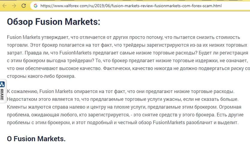 - Разоблачительная статья об аферистах Фьюжин Маркетс на странице valforex com
