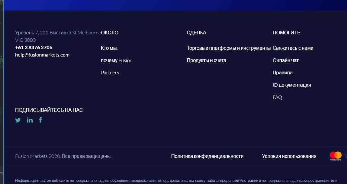 - Отсутствие страниц мошенников Fusion Markets в социальных сетях