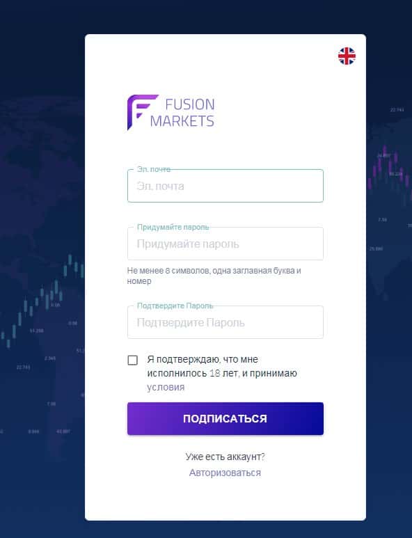 Регистрация аккаунта на подвальном сайте Fusion Markets
