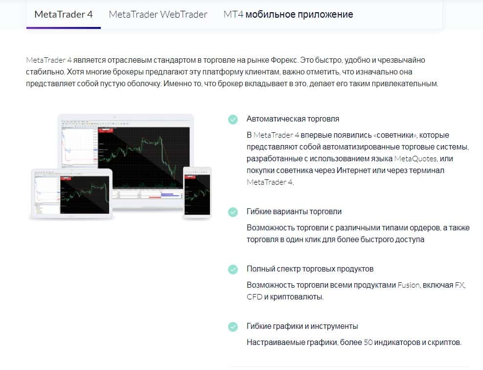 Кухня Fusion Markets предлагает зарабатывать на разных торговых платформах и пишет на сайта кучу непонятной обычному пользователю фактов о платформе чтобы запутать и быстренько окучить зеленого клиента и заставить вложить средства в заработок, предлагая полный спектр заманчивых услуг.