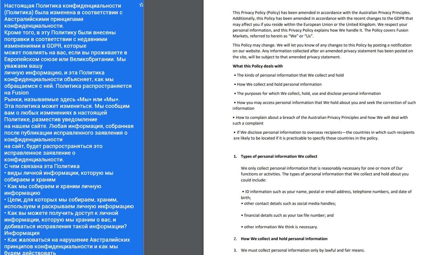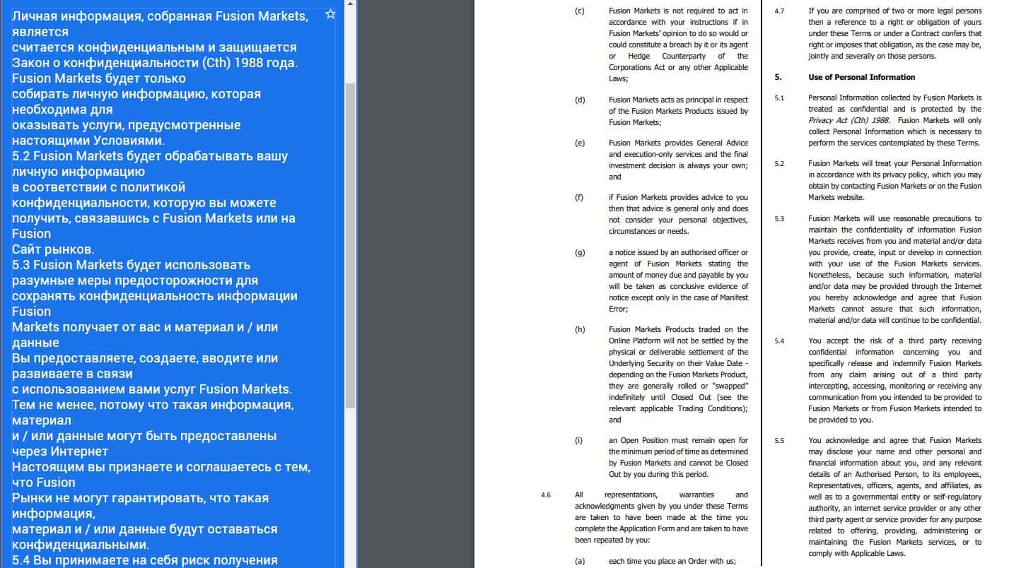 Данный документ у аферистов Фьюжин Маркетс начинается довольно стандартно и предсказуемо, полный набор сплошной воды и никакой конкретики. Постоянное повторение о том, что вкладчик аферистов Fusion Markets обязан сливать всю информацию о себе в пользу аферистов, что распоряжаться данными клиента они могут как угодно.