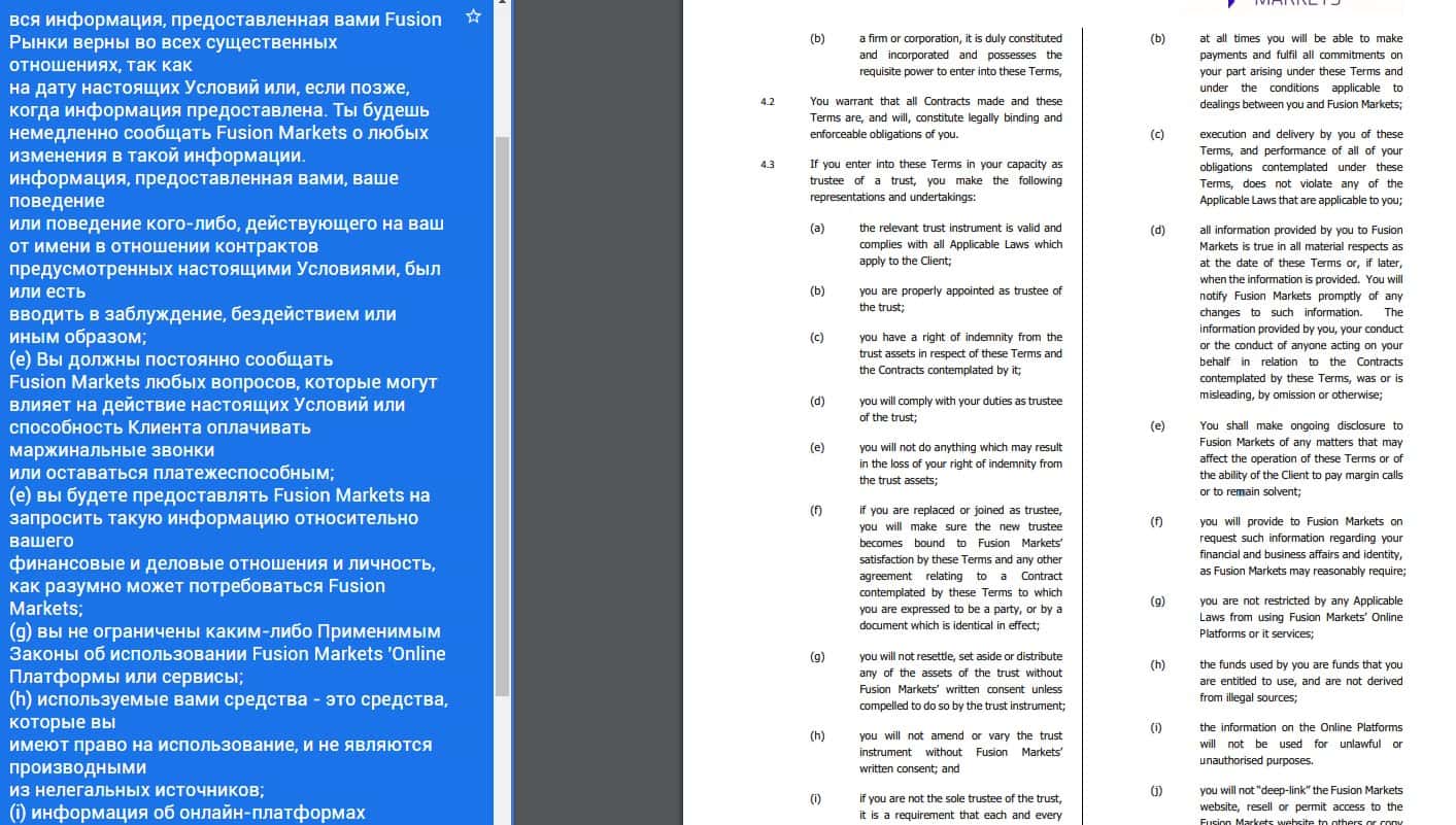 Перечень условий сотрудничества с наглыми аферистами Fusion Markets