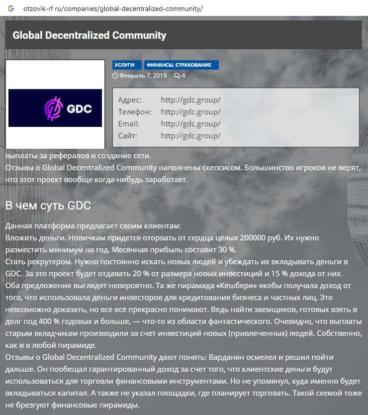 gdc-invest com - официальный сайт шараги Global Decentralized Community