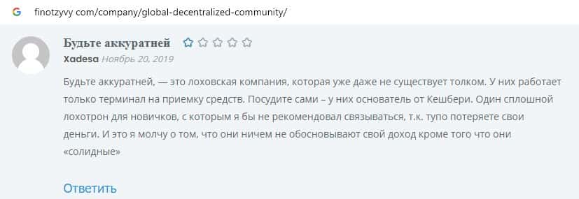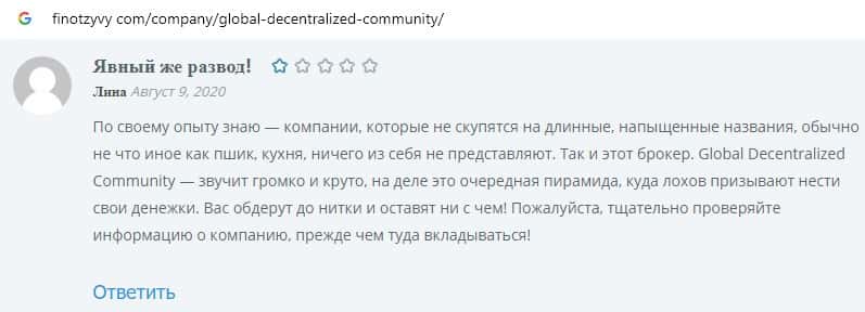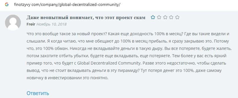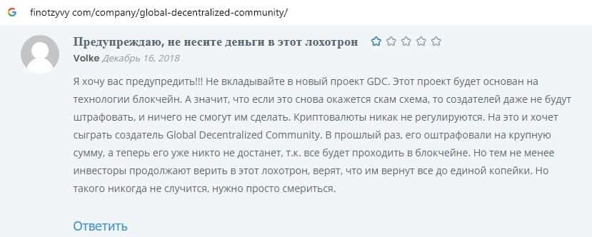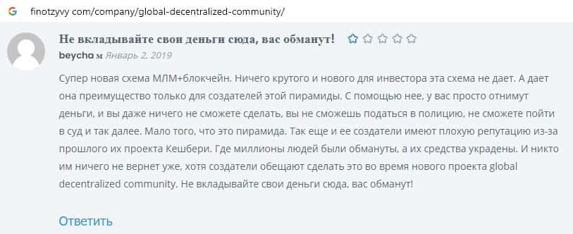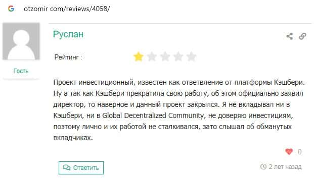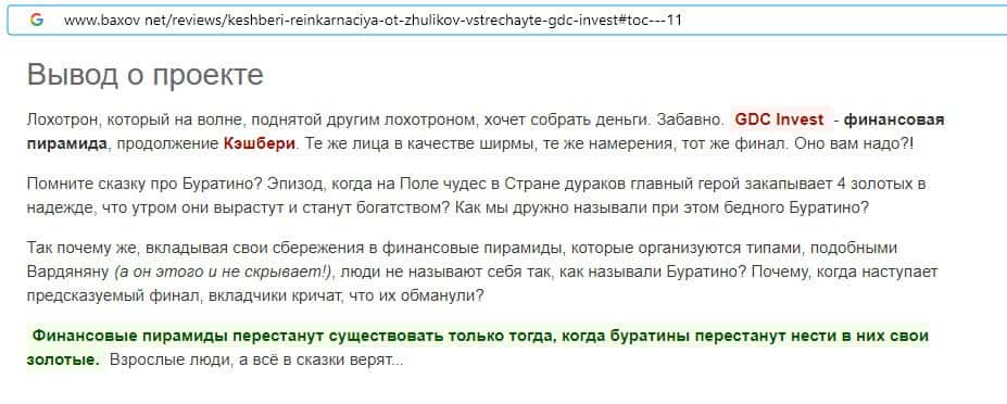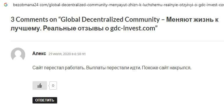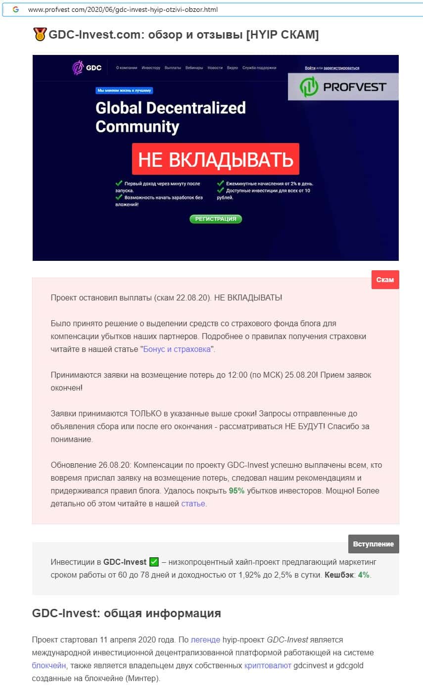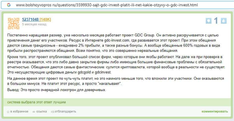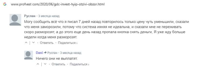 Отзывы о хайп-проекте ГДЦ Инвест, ныне присутствующие в сети-интернет