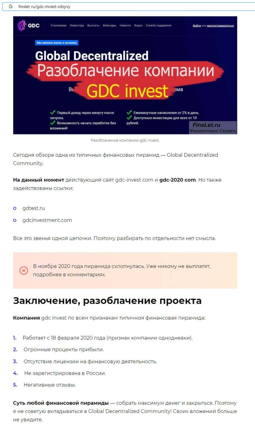 - У шараги GDC Invest есть все признаки финансовой пирамиды