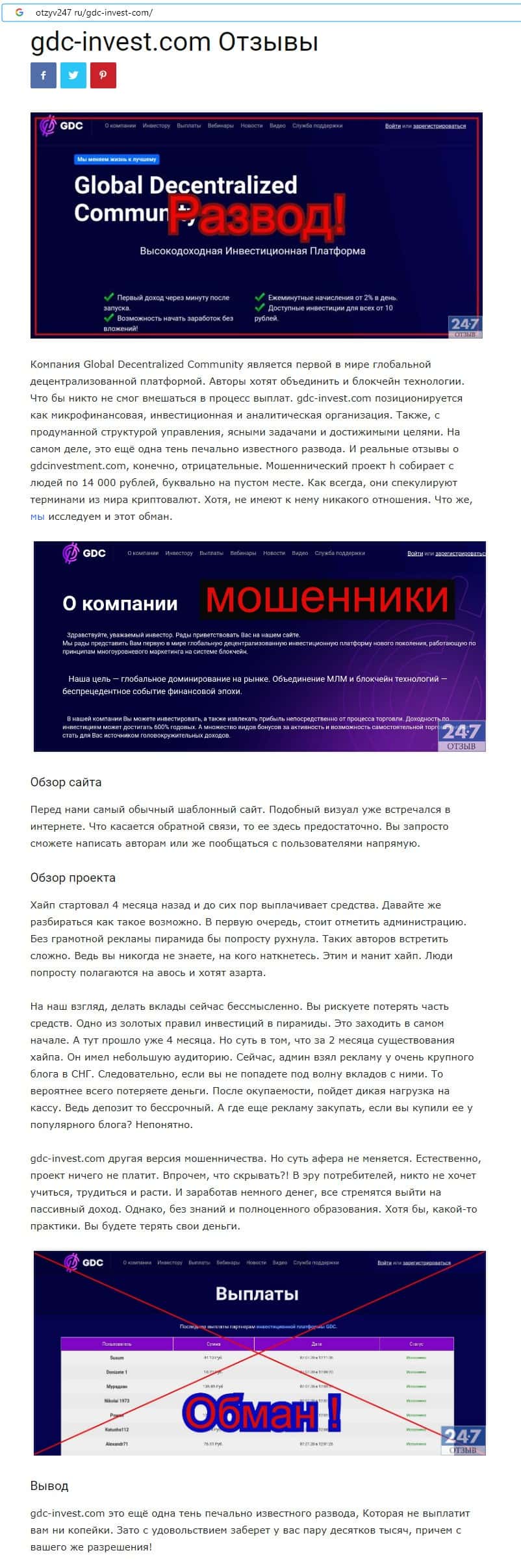 GDC Invest - обзоры аферистов на других интернет-порталах