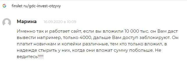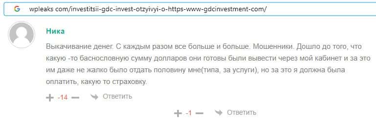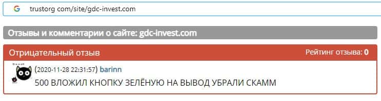 В данном разделе предлагаем ознакомиться с отзывами пользователей всемирной паутины о том, что контора GDC Invest является интернет-лохотроном.