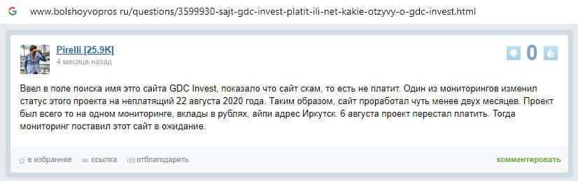 - Отзывы о хайп-проекте ГДЦ Инвест, ныне присутствующие в сети-интернет