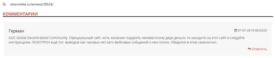 Далее предлагаем ознакомиться с комментарием о скам-организации GDC Invest, обещаниям которой не стоит верить.