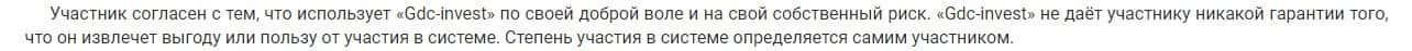 Обманщики GDC Invest не дают никаких гарантий, в том числе и то, что результат инвестирования будет прибыльным, доверять данной компании не имеет смысла.