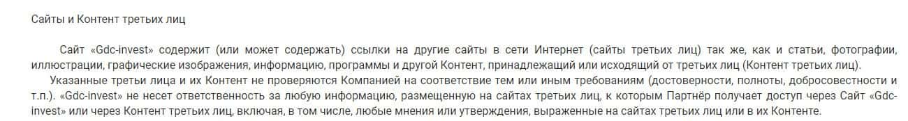 Скам-организация GDC Invest на своем официальном сайте размещает ссылки, за содержание которых скам-контора ответственности не несет.